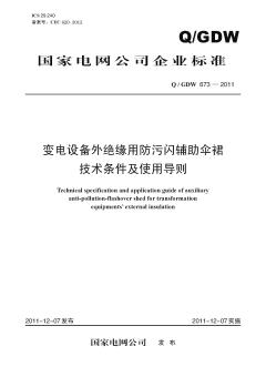 本标准规定了变电设备外绝缘用防污闪辅助伞裙(以下简称辅助伞裙)的基本技术要求、检验规则、包装与贮存、选用与验收、施工与运行维护等。本标准适用于国家电网公司所属交流系统额定电压35kV及以上、环境温度-40℃~+40℃条件下运行的变电设备外绝缘用防污闪辅助伞裙。